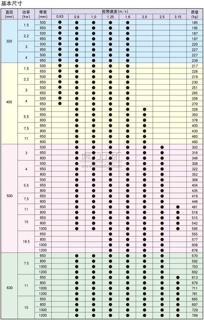 YDB-h隔爆型油冷式電動(dòng)滾筒基本參數(shù)表、外形尺寸表、安裝尺寸