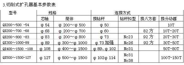 3、擴孔器的規(guī)格:根據(jù)擴大的孔徑不同,從200mm到1500mm。