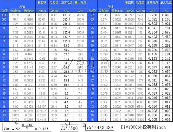 由表中歸納出的AWG與英寸的關(guān)系如下:
